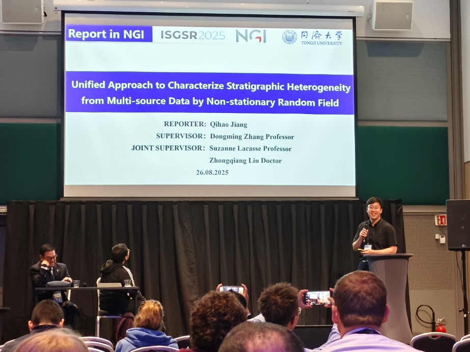 姜琪浩博士研究生受邀作了题为《Unified Approach to Characterize Stratigraphic Heterogeneity from Multi-source Data by Non-stationary Random Field》的口头报告,介绍了一种结合钻孔、CPT和土工试验数据联合表征场地不确定性的模拟方法,并以上海某工程为例进行了模型验证。