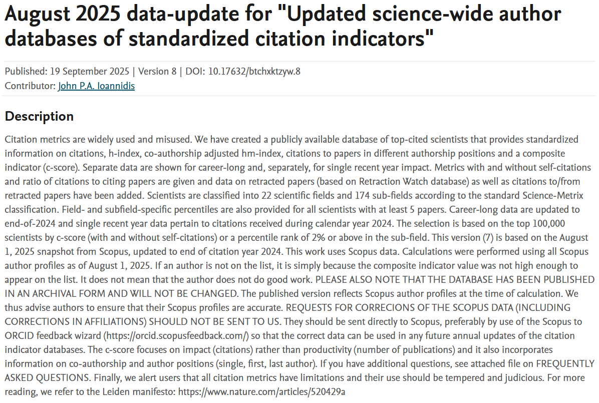 2025年7月19日,美国斯坦福大学发布了第八版全球前2%顶尖科学家榜单(Top 2% of Scientists on Stanford List)。