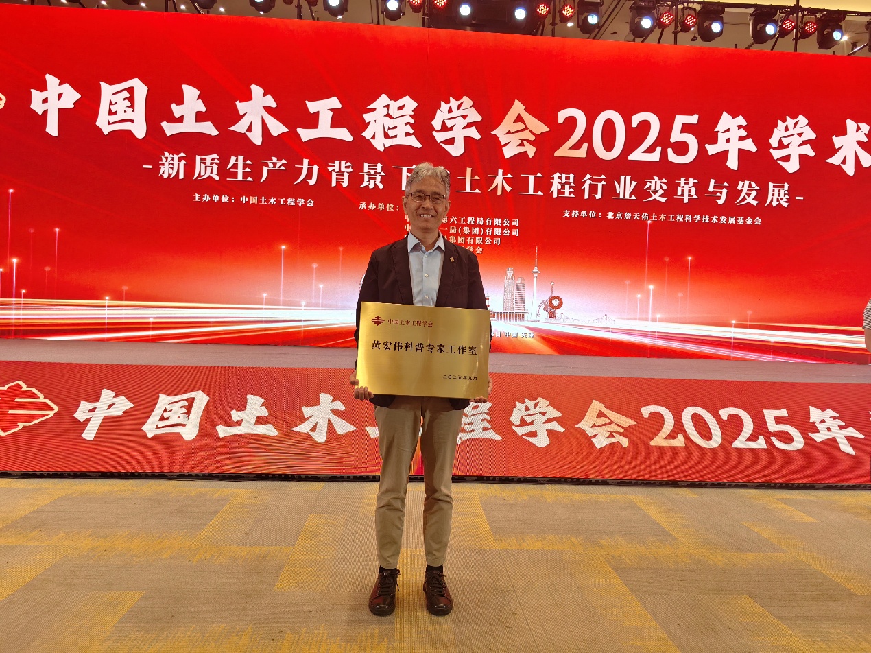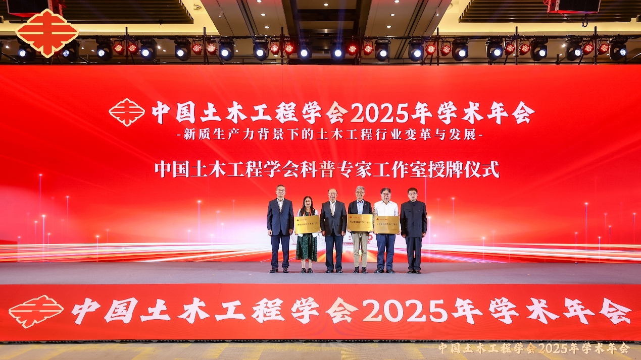 2025年9月10日,中国土木工程学会正式公布了首批“中国土木工程学会科普专家工作室”认定名单。“周福霖科普专家工作室”“黄宏伟科普专家工作室”“黄晓家科普专家工作室”成为首批“中国土木工程学会科普专家工作室”。9月17日,在中国土木工程学会2025年学术年会上,易军理事长为三家工作室授牌(图1)。