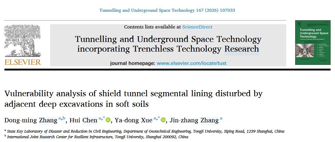 Zhang, D., Chen, H., Xue, Y., Zhang, J., 2026. Vulnerability analysis of shield tunnel segmental lining disturbed by adjacent deep excavations in soft soils. Tunnelling and Underground Space Technology 167, 107033.