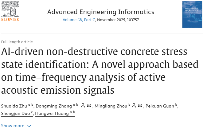 Zhu S, Zhang D, Zhou M, et al. AI-driven non-destructive concrete stress state identification: A novel approach based on time–frequency analysis of active acoustic emission signals[J]. Advanced Engineering Informatics, 2025, 68: 103757.
